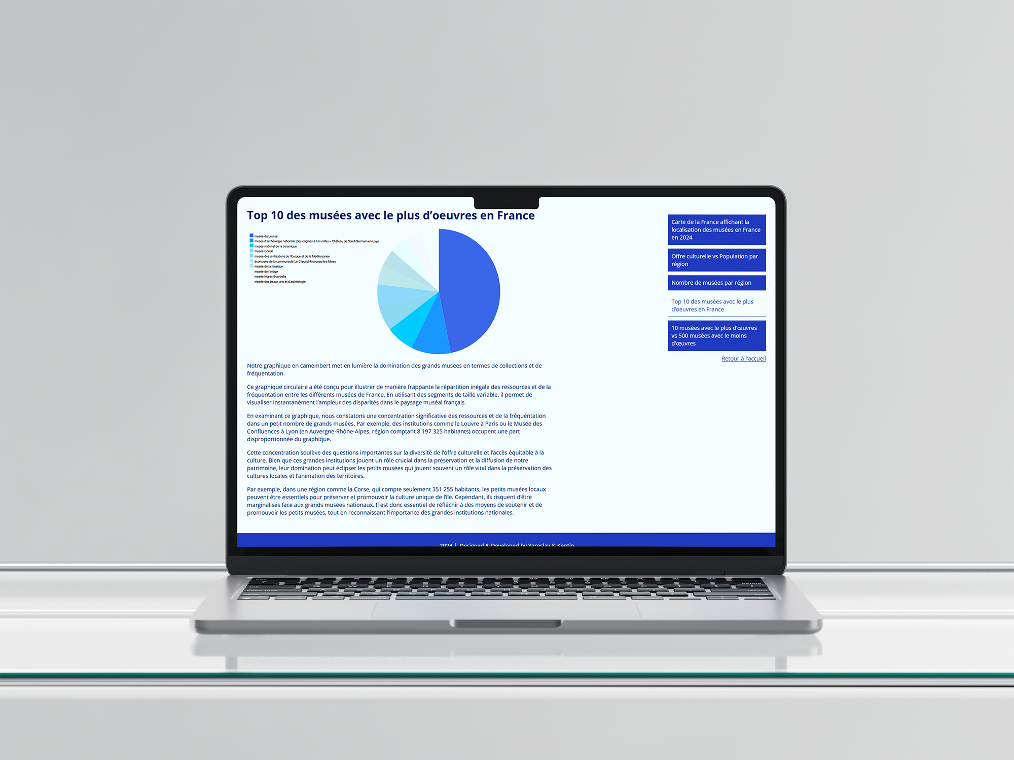 This website was a university exam, where we participated in the French open data university challenge, focusing on the theme of culture. With my collaborator, we chose to explore and highlight the cultural offerings of France’s museums using available open datasets.