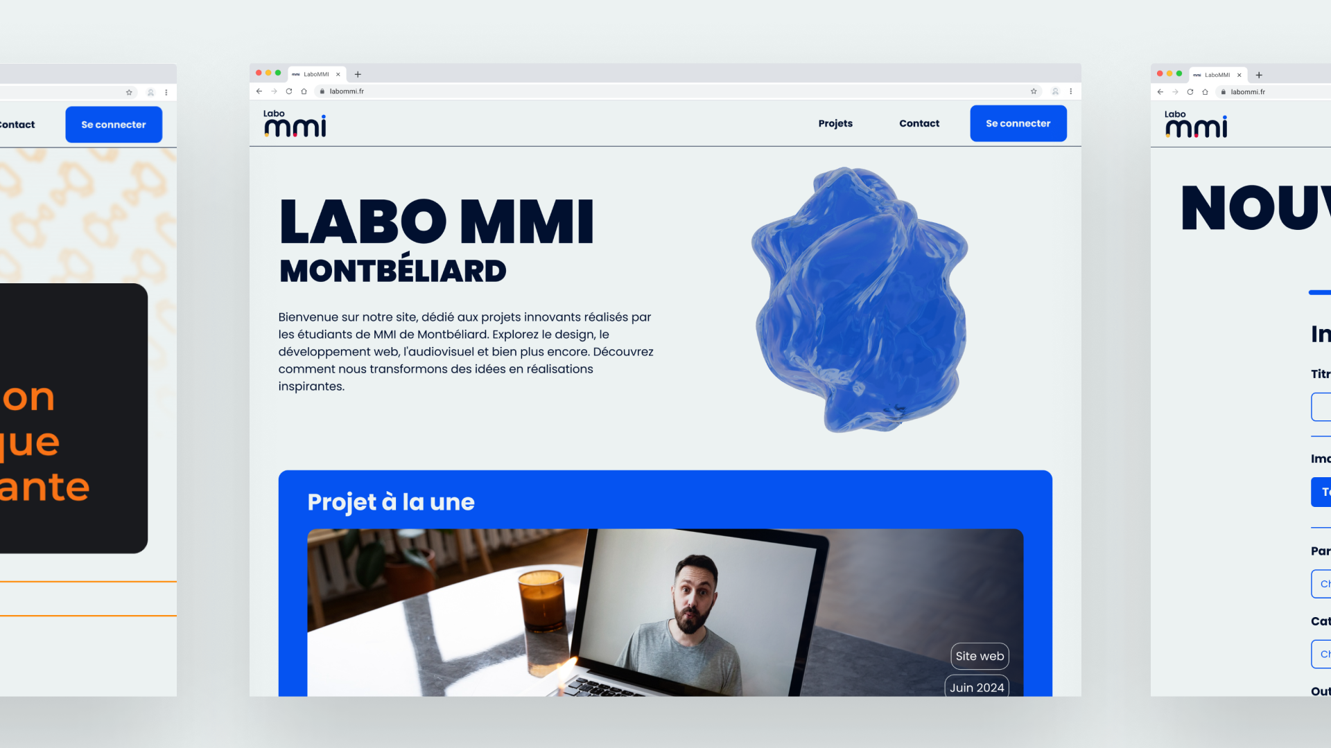 LaboMMI is a website designed for MMI Montbéliard students to share the projects they create during their studies. It also serves as a showcase for the university, promoting the MMI program.