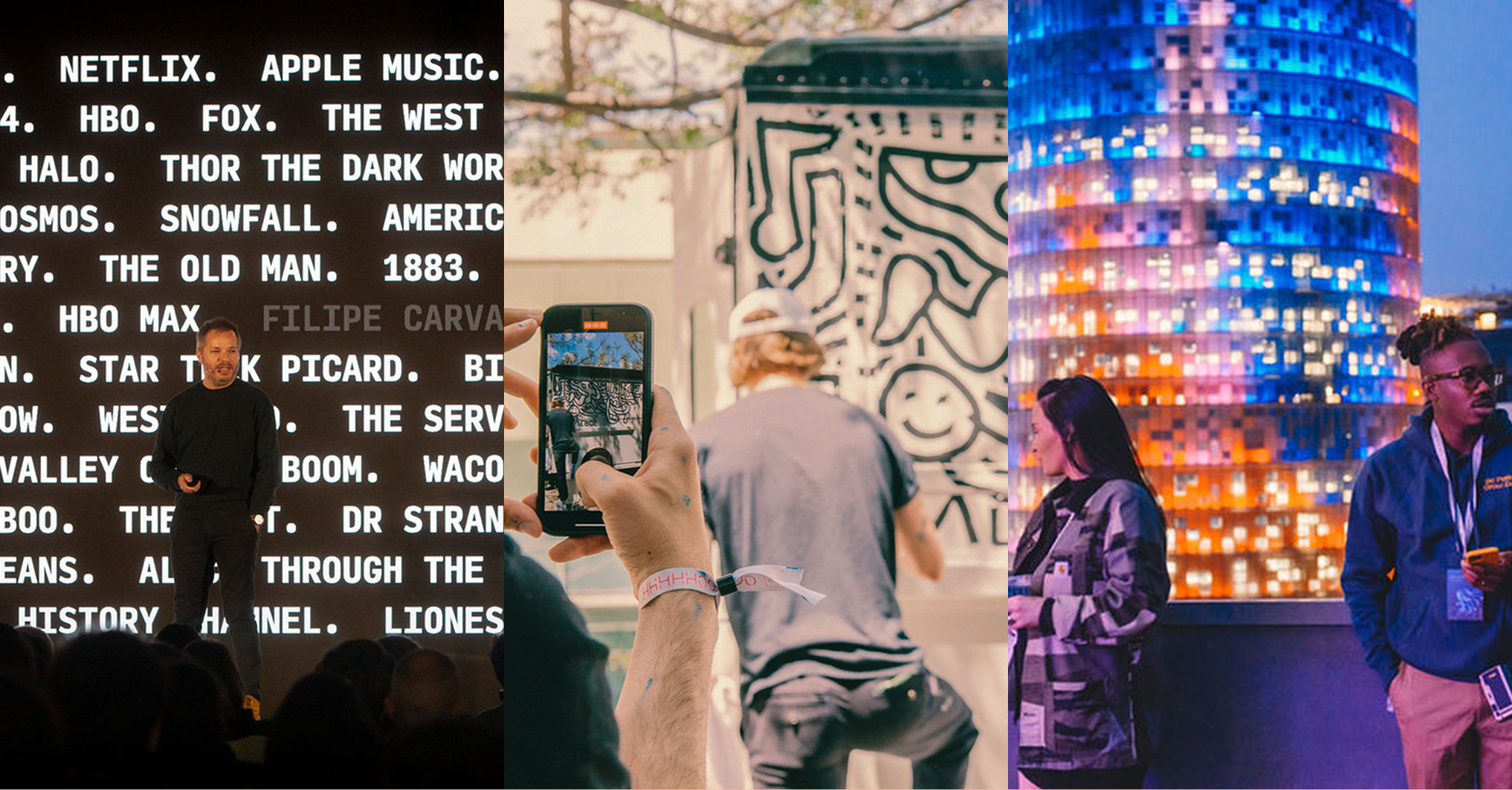 Також я вирішив зберегти фотографії фестивалю, адже їхня живість і людяність створюють сильний контраст із дуже цифровим і геометричним логотипом.